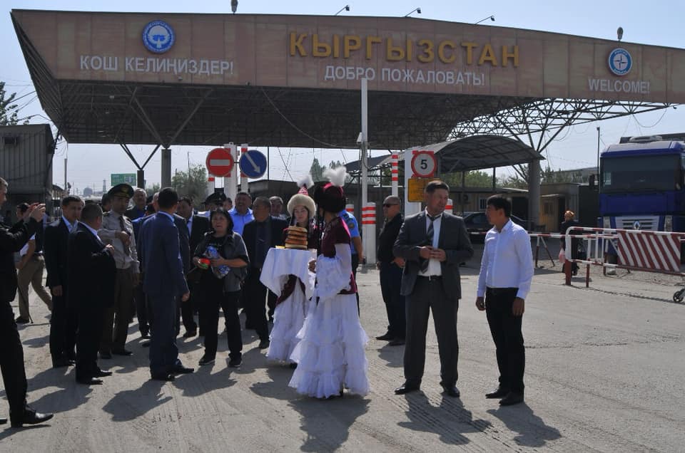 На границе Кыргызстана также провели праздничную церемонию запуска микроавтобусов между двумя странами.