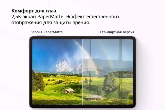 В основе устройства — безрамочный экран HUAWEI FullView с частотой обновления 120 Гц. Повышенная частота обновления заметна в базовых сценариях: прокрутка интерфейса, работа с документами, навигация между приложениями. Экран не перегружен визуально и хорошо подходит для длительного использования — чтения, заметок, работы с текстами и таблицами.