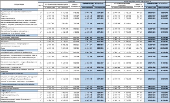 Стоимость контракта определяется исходя из МРОТ (на данный момент составляет 679 330 сумов). Размер контракта в бакалавриате или магистратуре зависит от направления.