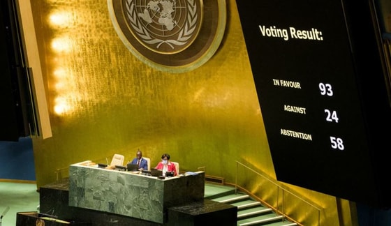 Голосование прошло в штаб-квартире ООН в Нью-Йорке в ходе возобновленной 11-й чрезвычайной спецсессии. Генеральная Ассамблея ООН проголосовала за приостановление членства России в Совете ООН по правам человека. Соответствующую резолюцию предложила Украина в соавторстве с 58 странами. Её поддержали 93 государства, 24 делегации выступили против, 58 – воздержались.