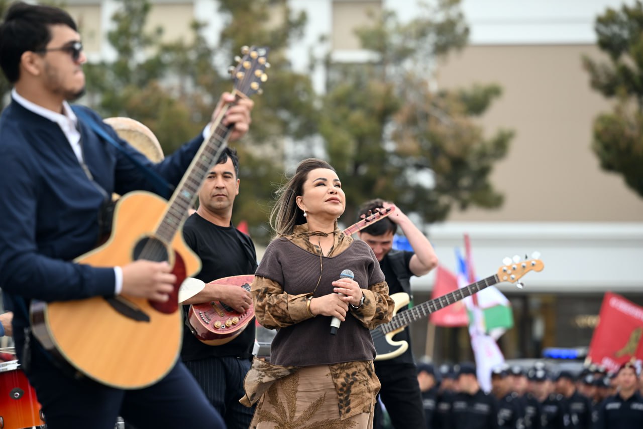 Собравшихся порадовали показательные номера представителей Национальной гвардии, а также яркие выступления артистов отечественной эстрады.