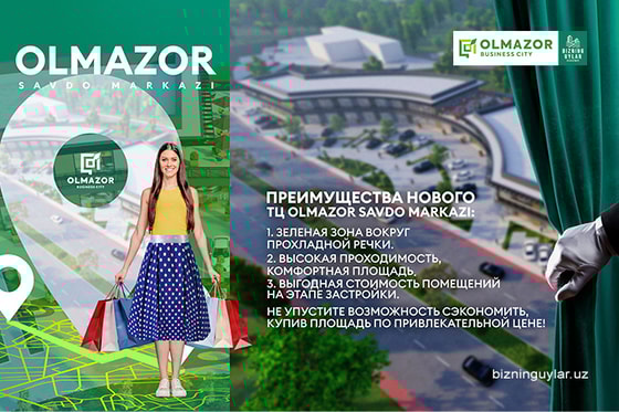 18 июня компания Bizning uylar открыла продажи помещений в строящемся торговом центре Olmazor Savdo Markazi. Его основным преимуществом является расположение. Шопинг-молл возводится в одном из густонаселенных районов столицы рядом с заселенным жилым комплексом и трассой, по которой ежедневно проезжает 15 тысяч автомобилей. Безопасный заезд на паркинг у входа в комплекс будет способствовать привлечению проезжающих мимо покупателей. Помимо этого, вблизи торгового центра находятся остановки общественного транспорта.