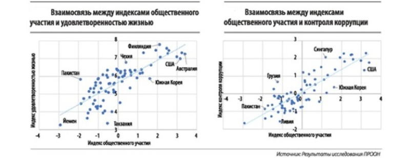 Анализ показал, что в странах с высоким уровнем общественного участия наблюдается один из самых высоких уровней удовлетворенностью граждан жизнью и сравнительно низкий уровень коррумпированности органов власти.