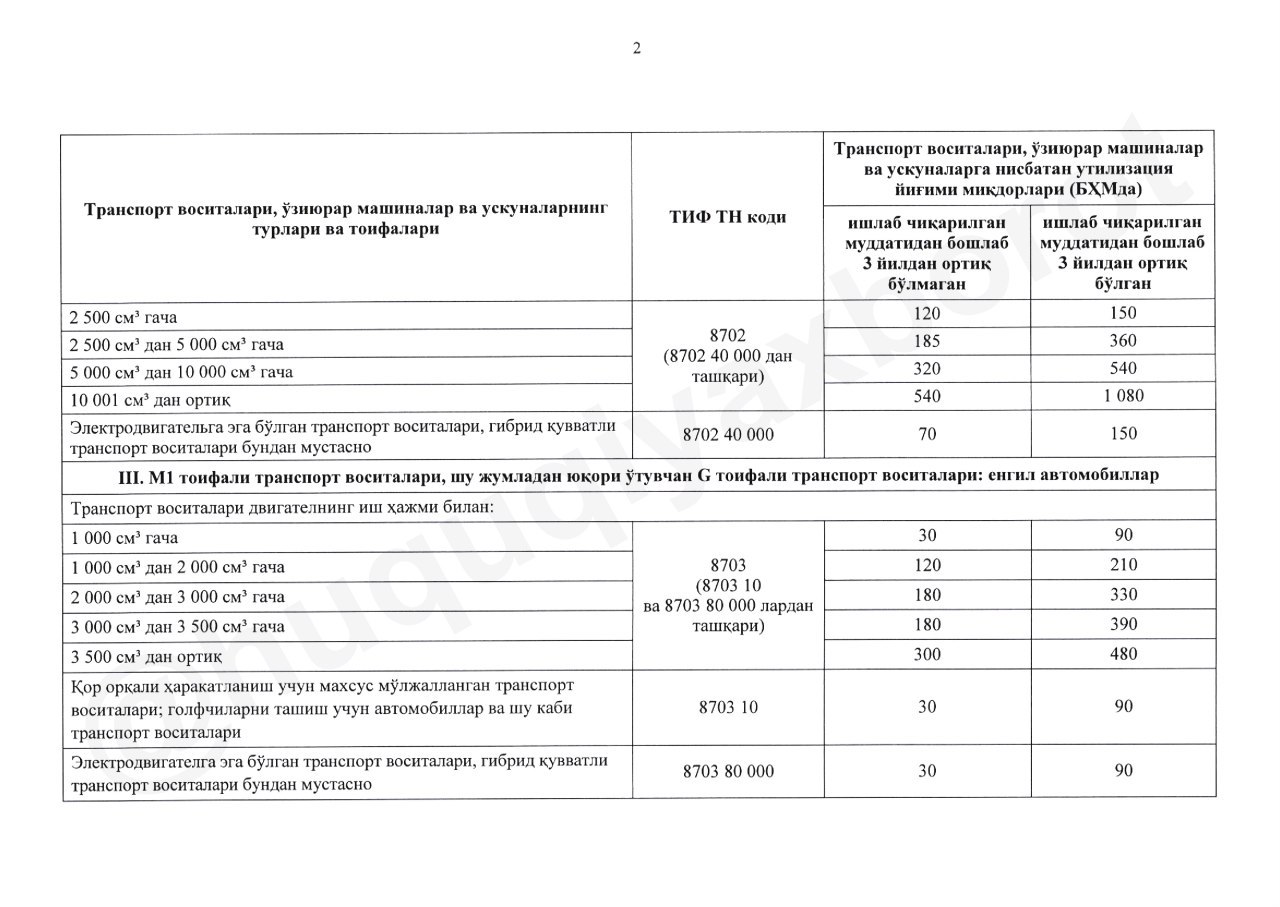 - транспортные средства, принадлежащие дипломатическим представительствам или консульским учреждениям, международным организациям, а также их работникам, не являющихся гражданами Узбекистана, лицам, имеющим дипломатический статус и члены их семей;