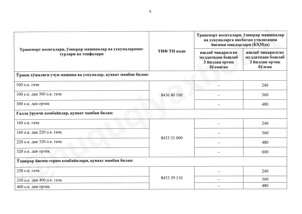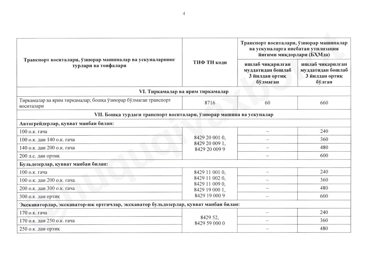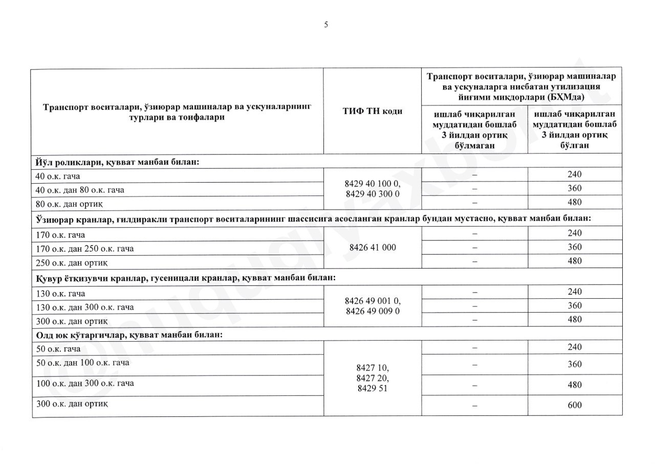 - транспортные средства, ввозимые в Узбекистан и зарегистрированные в таможенном режиме временного ввоза.