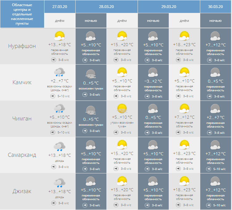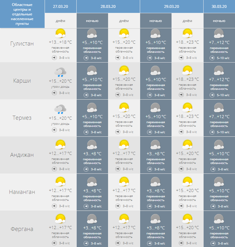 27 марта по большей части территории республики сохранится сухая погода, лишь в Самаркандской, Джизакской областях местами пройдут дожди, пишет Узгидромет.