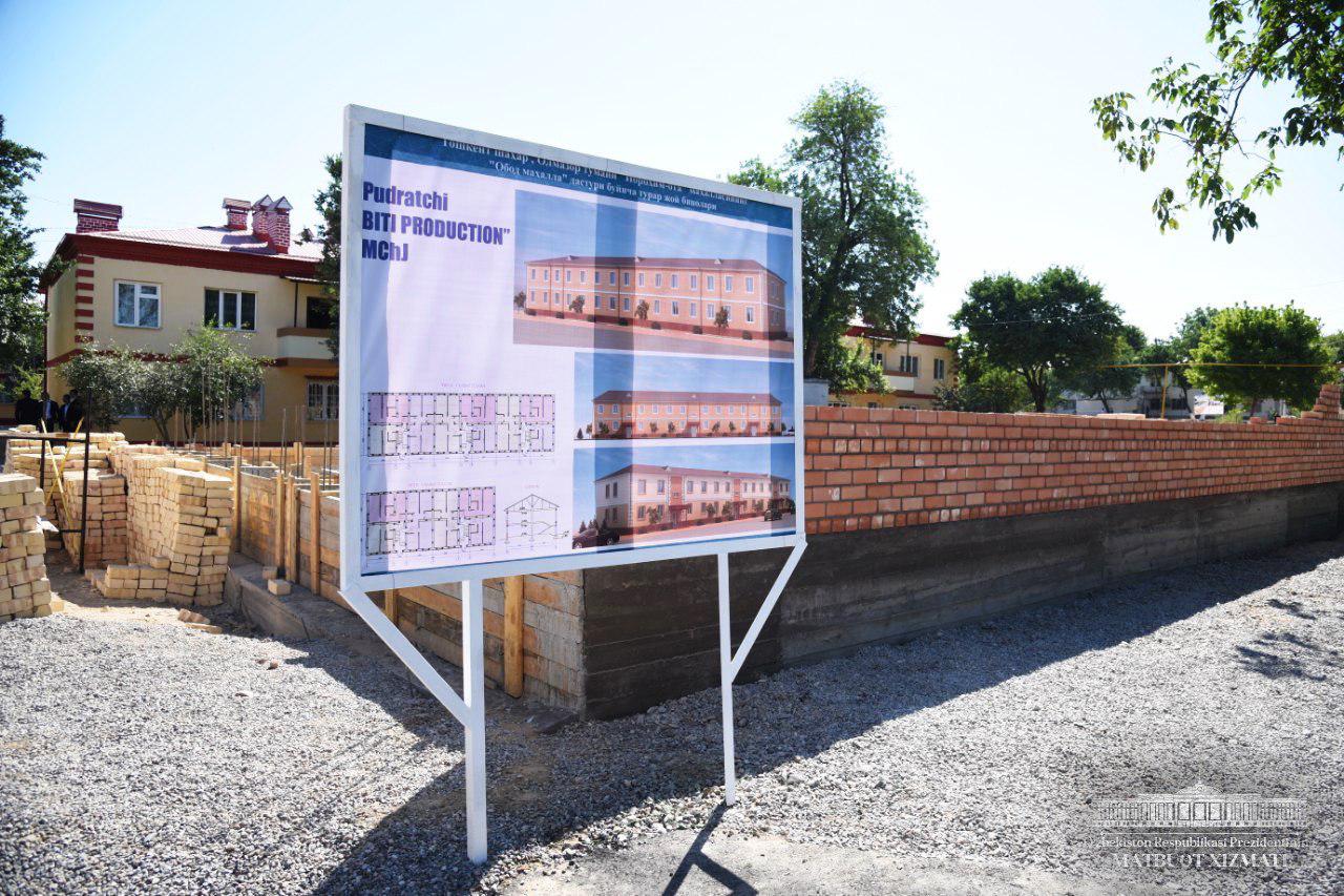 Шавкат Мирзиёев посетил махаллю «Иброхим ота», где ознакомился с ходом строительных работ. Тут расположено 19 двухэтажных и 4 четырехэтажных домов построенных в 1960-х годов, которые нуждаются в ремонте, устарели и инженерно-коммуникационные сети.