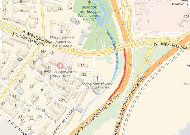В Яшнабадском районе открыли съезд для авто с улицы Махтумкули на улицу Абдуллы Кадыри. Расположенный сразу за Костелом (католический храм) съезд долгое время был закрыт.