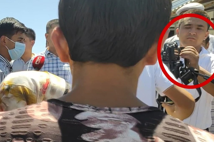Согласно информации, журналисты телеканала отправились на место пожара, где они встретили хокима района, беседовавшего с предпринимателями, товары которых сгорели. Позже творческая группа решила взять комментарий у хокима, однако, они столкнулись с трудностями.