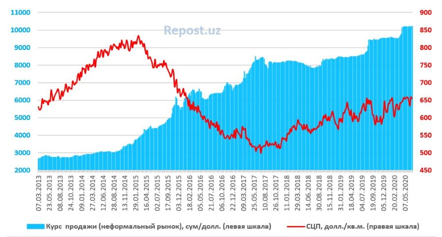 Кроме карантинных мероприятий негативно на рынок жилья влияет резкая девальвация национальной валюты, проведённая ЦБ в целях обеспечения эффективного курса сума по отношению к национальным валютам стран-соседей, прежде всего, это относится к РФ и Казахстану.