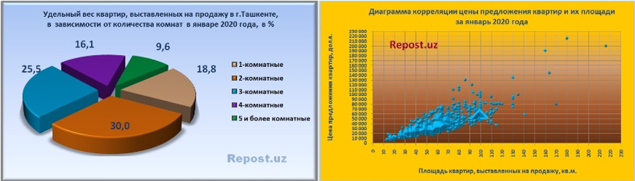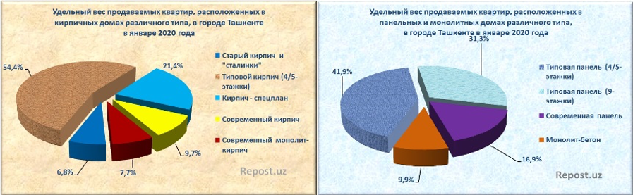В январе 2020 года число предложений по продаже вторичного жилья несколько снизилось. Если в августе 2019 года количество предложений выросло по сравнению с предыдущим месяцем на 3,2%, в сентябре – на 3,5%, в октябре – на 4,1%, в ноябре – на 3,7%, в декабре наблюдалось снижение на 4,8%. Сокращение количества предложений продолжалось и в январе текущего года: по сравнению с декабрем 2019 года их число уменьшилось почти на 5%. Некоторые продавцы сняли свои предложения, ожидая дальнейшего роста цен на жилье в Ташкенте.