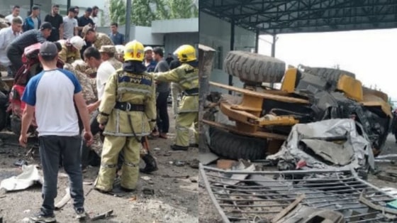 Инцидент произошел 21 мая в 15:30. У автотрейлера, следовавшего из Кадамжайского района Кыргызстана в Сохский район Ферганской области Узбекистана, отказали тормоза.