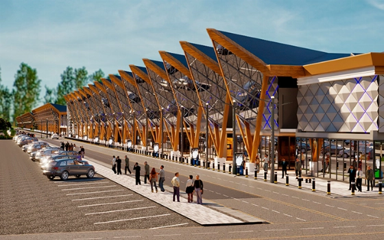 Фасад комплекса выполняется из современных качественных материалов с совмещением сложных металлоконструкций с использованием остекления и повсеместного освещения. Внутри комплекса создаются комфортные условия для пребывания гостей и арендодателей.