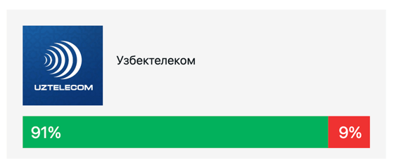 В данной категории снова победил «Узбектелеком» – 91%. Второе место у авиаперевозчика Uzbekistan Airways – 93%, третье место заняла компания Hududiy elektr tarmoqlari – 62%.