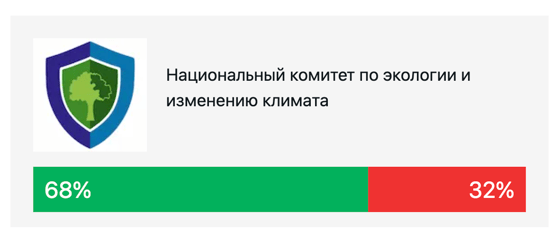 Победу в этой категории одержал Национальный комитет по экологии и изменению климата (68%), на втором месте расположился Комитет по туризму (90%), а на третьем – Налоговый комитет (73%).