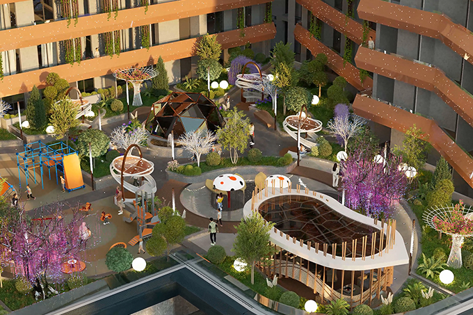 • двор на уровне 4-го этажа, с видом на парк Бабура;