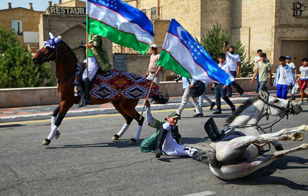 В Бухаре во время торжественного марша на Международном традиционном фестивале «Шелк и специи» всадник упал вместе с лошадью на землю, держа в руках флаг. Этот случай был интерпретирован как «Настоящий патриот, который, хоть и упал на землю, но не выпустил знамя из рук». Корреспондент Daryo.uz узнал, как сложилась данная ситуация.