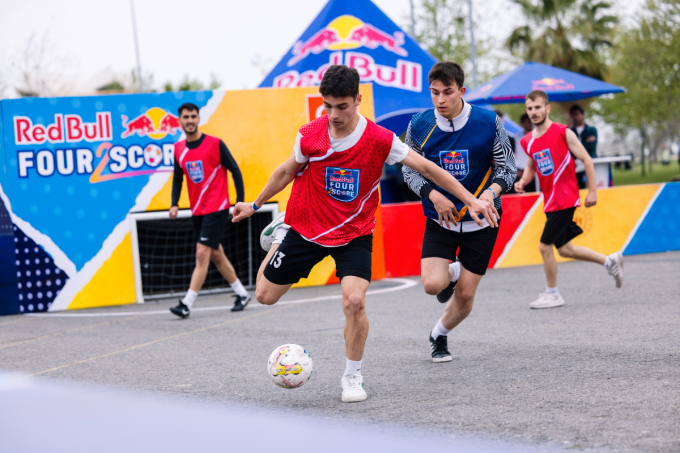 Red Bull Four 2 Score — это футбольный турнир на малом поле в формате 4 на 4. Матчи длятся 10 минут, без перерывов и вратарей. Особенность турнира в том, что голы, забитые в первые и последние 60 секунд игры, приносят по 2 очка. В соревновании участвуют более 25 стран, а победители получают шанс сразиться в финале мирового чемпионата в RB Leipzig, Германия.