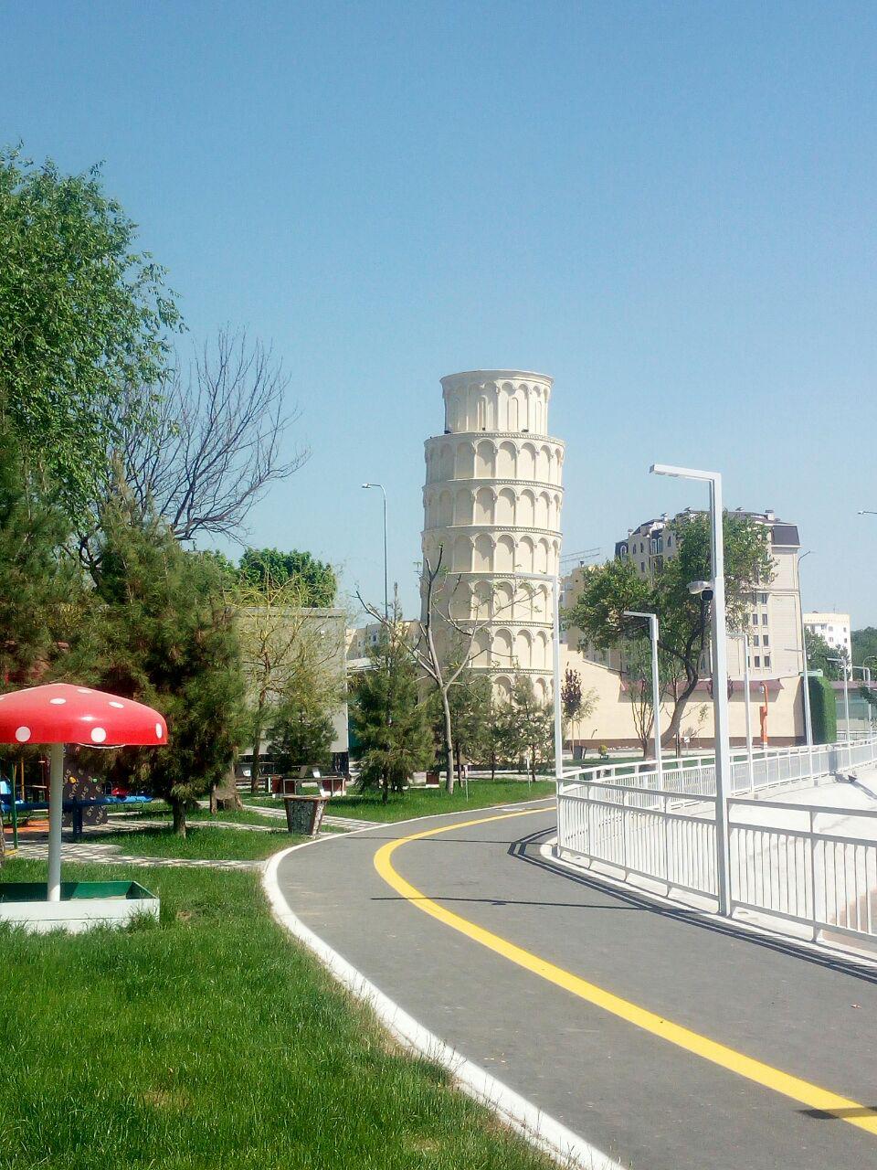 Отмечается, что с целью создания удобств для посетителей и местных жителей, приезжающих на прогулку, были построены различные рестораны, коворкинг-центры, макеты башенных калонов в Бухаре, шахматный дом, макеты Эйфелевой и Пизанской башни.