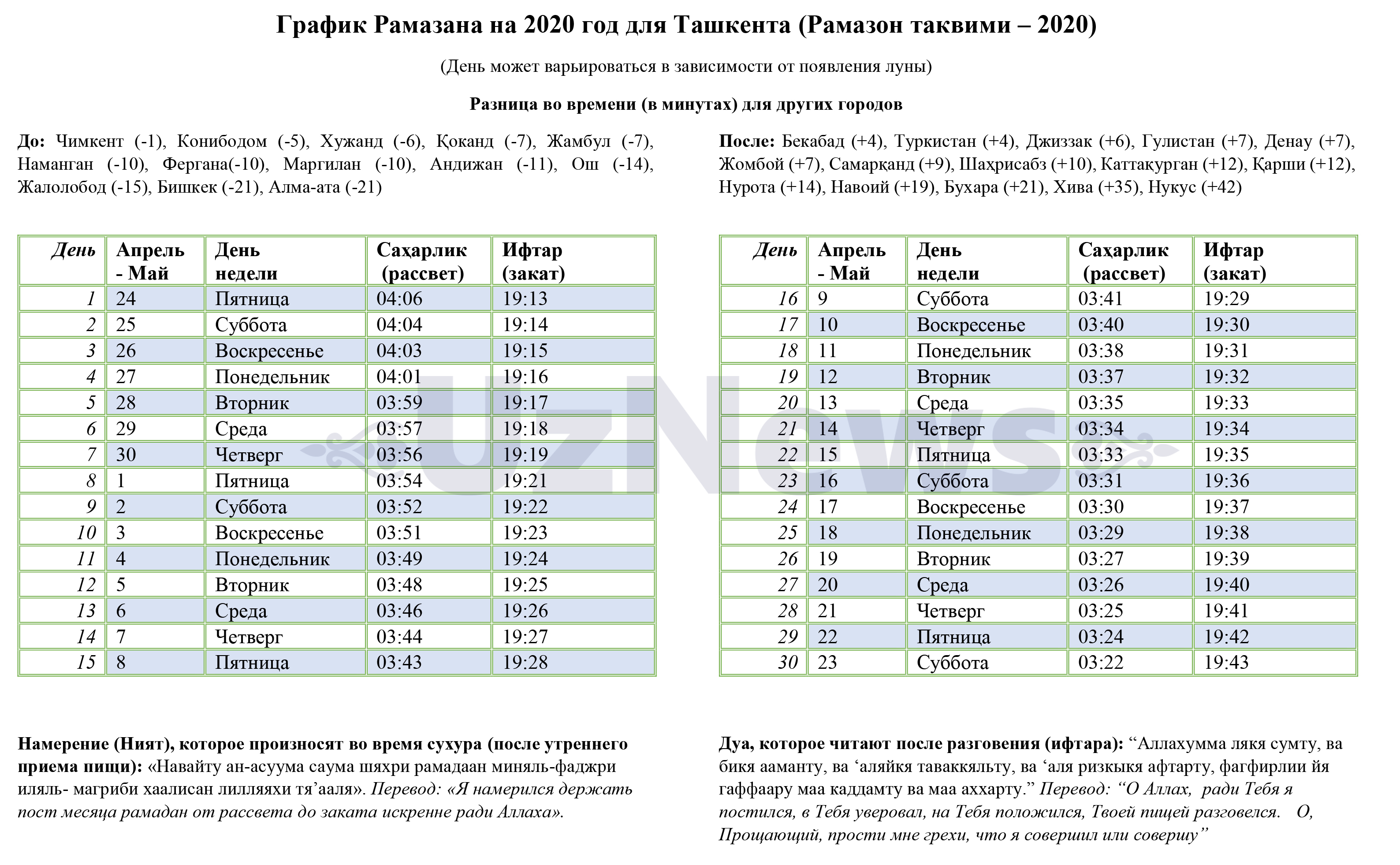 Президент Шавкат Мирзиёев подписал постановление «О достойном проведении священного месяца Рамадан», в котором говорится, что начало месяца Рамадан выпадает на 24 апреля, пишет UzNews.