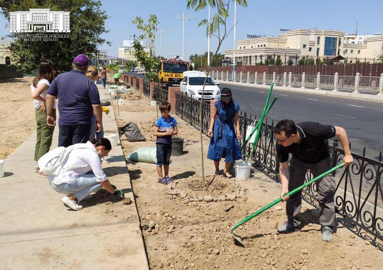 В каждом районе Ташкента сотрудники хокимиятов и простые жители вышли на уборку своих тротуаров и зелёных зон, многие сажают деревья. Энтузиасты подготовили более сотни саженцев, десятки добровольцев вышли на их посадку вдоль улицы Тараккиёт и около парка Ашхабад.
