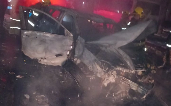 Из-за столкновения передняя часть автомобиля загорелась. В Tracker находились еще трое пассажиров, которых госпитализировали с различными травмами. О состоянии водителя не сообщается.