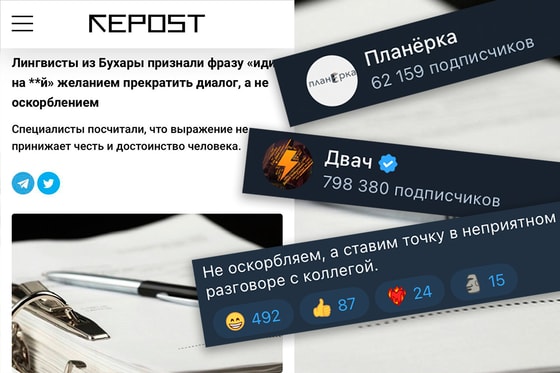 Пару недель назад Repost.uz писал о том, что лингвисты из Бухары признали фразу «иди на **й» желанием прекратить диалог, а не оскорблением.