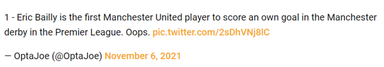 Что касается антирекордов, то Байи стал первым футболистом МЮ, отметившимся голом в свои ворота в дерби с МС в рамках АПЛ.
