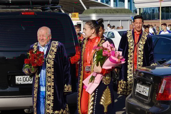 Спортсменов встречала делегация во главе с заместителем Премьер-министра Республики Узбекистан Азизом Абдухакимовым.