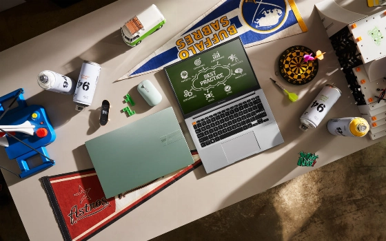 Vivobook S 15 OLED произведет впечатление на каждого, кто на него посмотрит: металлическая крышка корпуса в полуглянцевом исполнении, дизайнерские акценты на клавишах Enter и ESC, новый объемный логотип линейки и приятные цветовые решения в плане оформления. Ноутбук представлен в трех цветах на выбор: цепляющий Brave Green, подходящий ко всему Neutral Grey и подчеркивающий статус Indie Black. Так, каждый пользователь сможет подобрать ноутбук под свой темперамент и стиль.