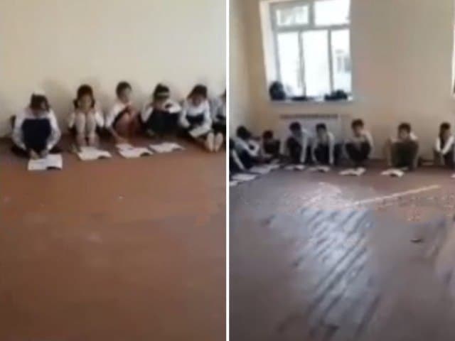 В социальных сетях распространилась видеозапись, на которой школьники из Яккабагского района Кашкадарьинской области обучались сидя на полу в кабинете без парт и стульев.