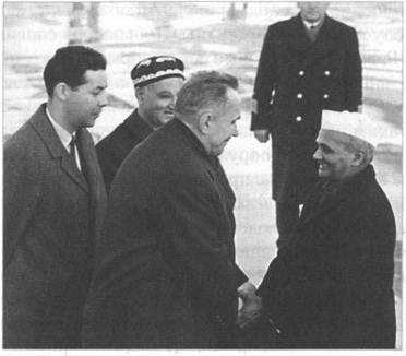Косыгин приветствует Л. Шастри, Ташкент, январь 1966 года