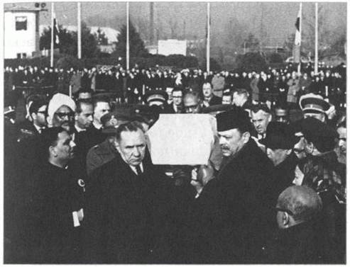 А. Н. Косыгин и А. Хан во главе траурной процессии.
