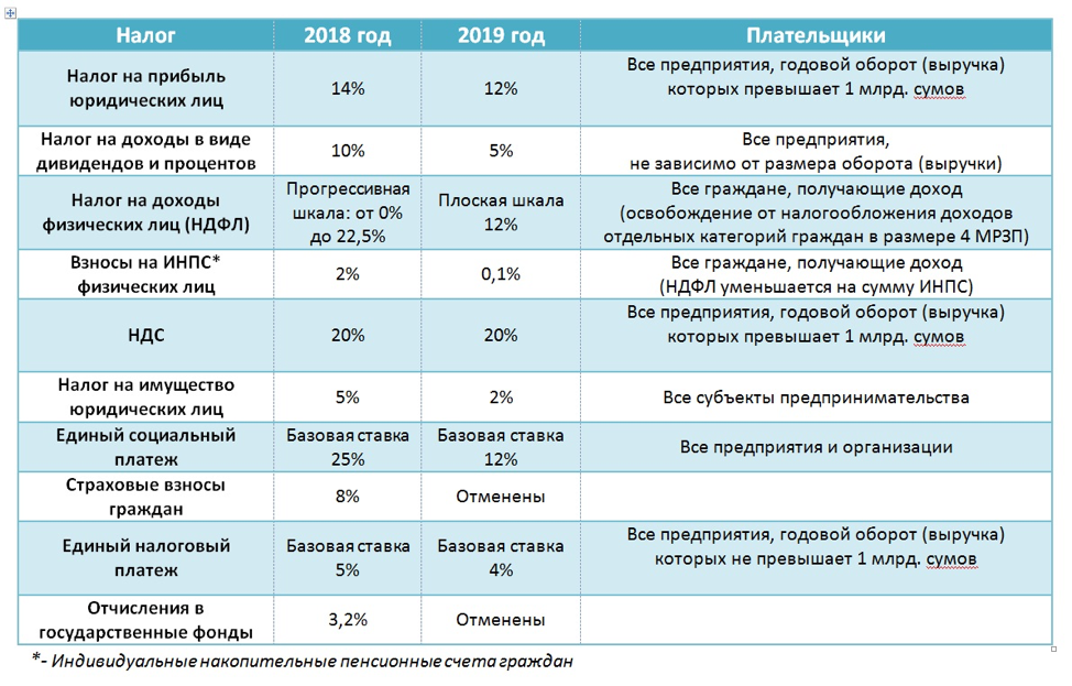 Давайте посмотрим на основные действующие (2018 год) и предлагаемые (2019 год) условия налогообложения.