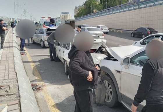 Авария случилась 8 апреля в 09:00 на улице Фурката. Между собой столкнулись Lacetti, Nexia-3, Nexia-2 и Captiva.