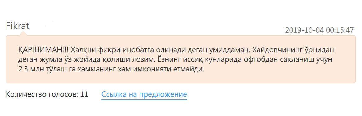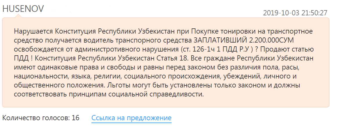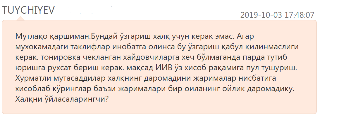 За два дня узбекистанцы выступили против законопроекта, опубликовав десятки негативных комментариев: