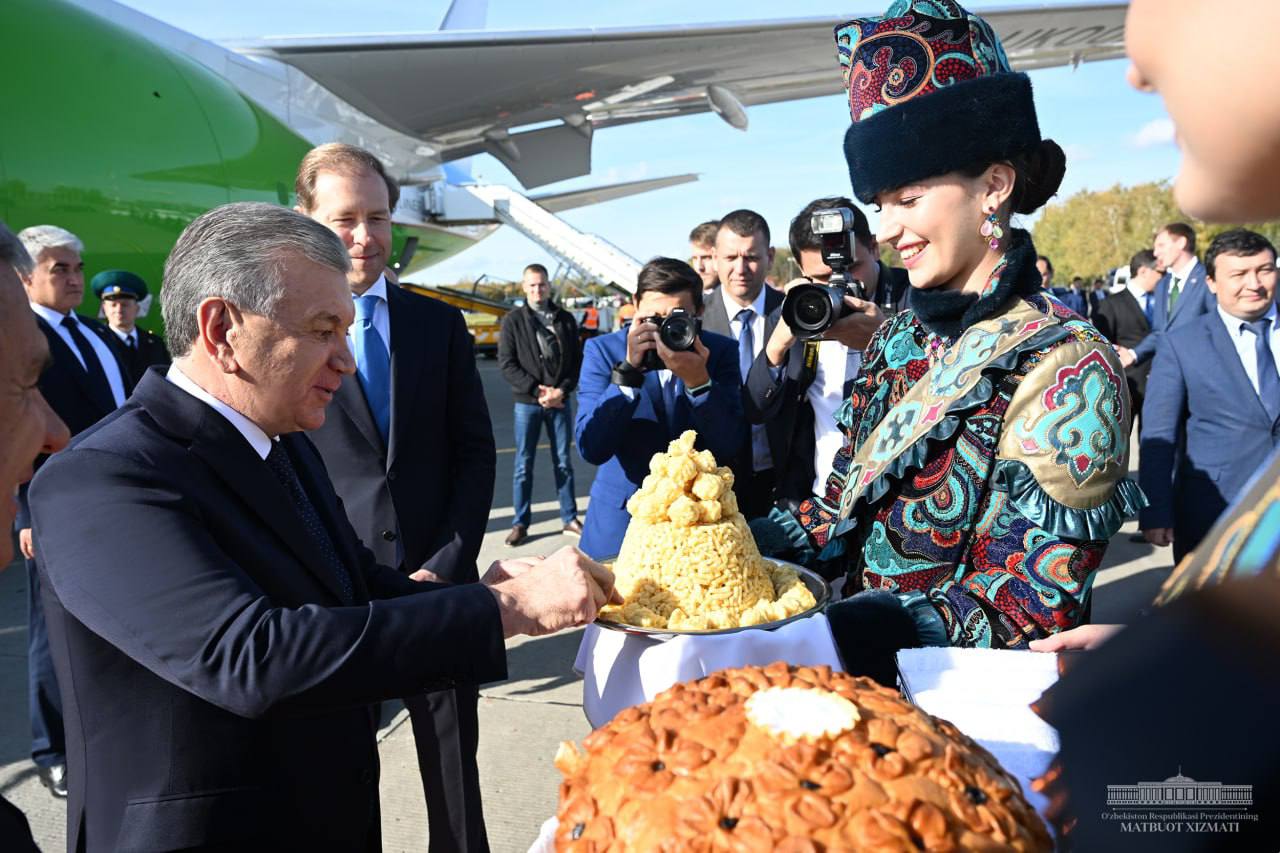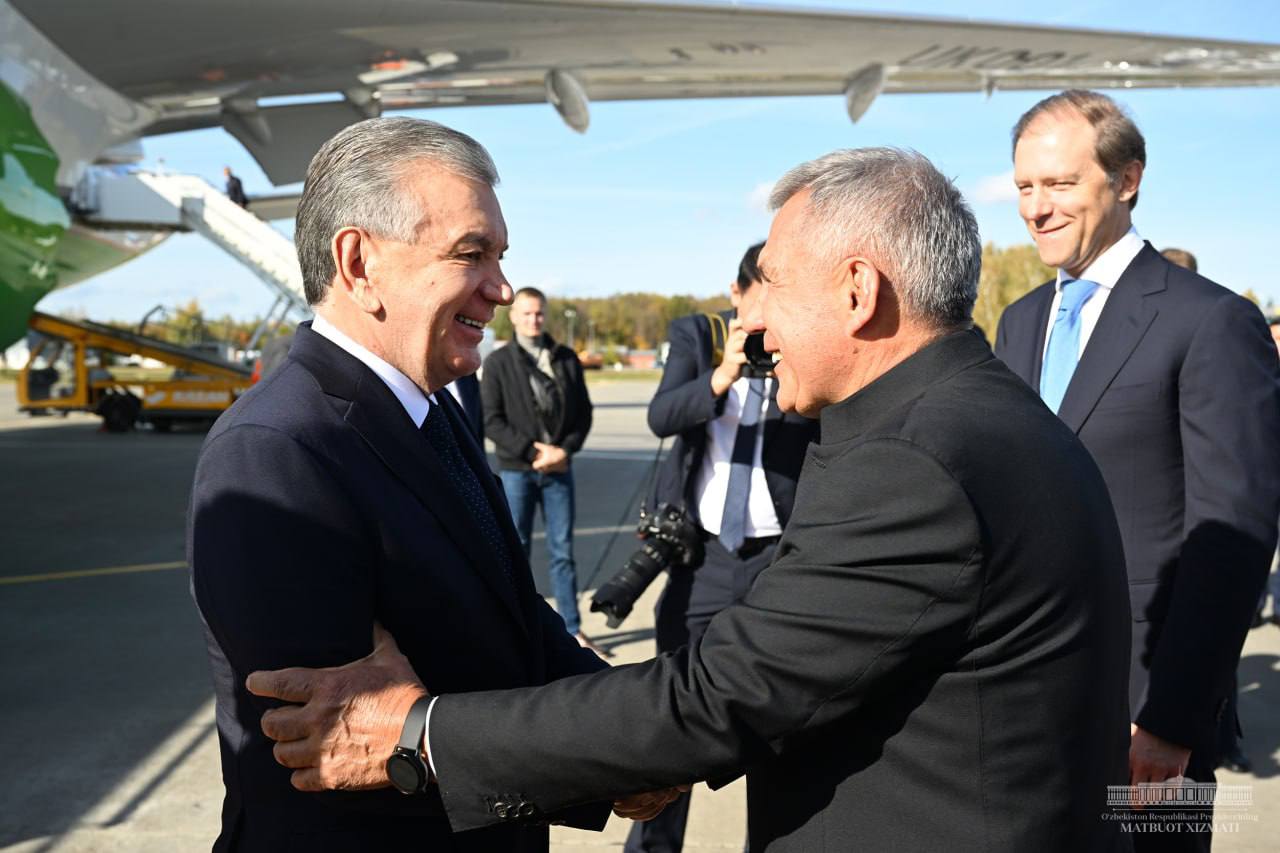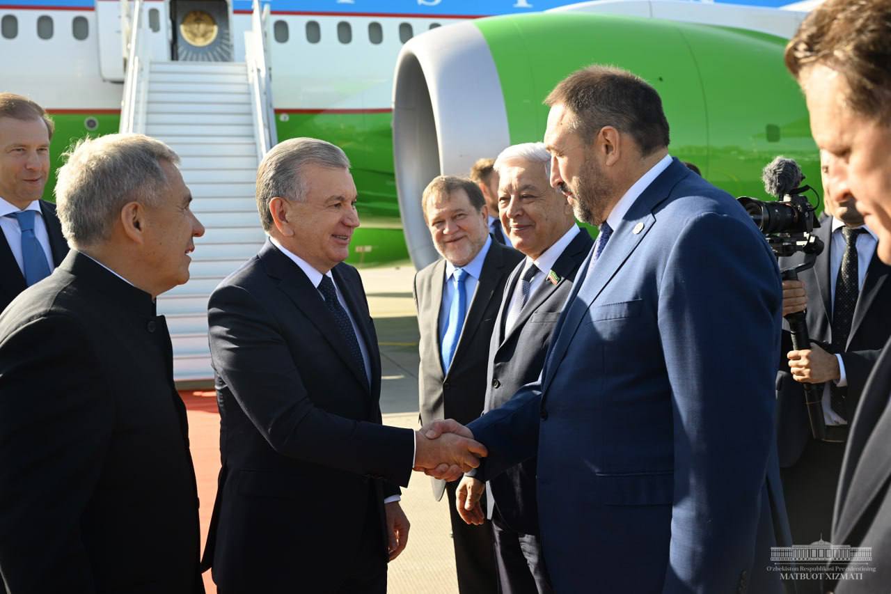 Президент Шавкат Мирзиёев прибыл в Казань в рамках официального визита в Россию, сообщает пресс-служба главы государства.