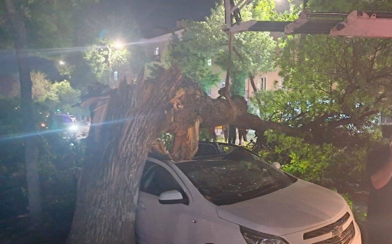 В Мирабадском районе Ташкента из-за сильного ветра дерево упало на машины, сообщает пресс-служба районного хокимията.