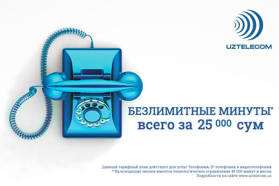 Есть такой стереотип, что на услуги домашней телефонии имеется только один тарифный план — абонентская плата 5800 сумов в месяц и включенные 180 минут. Но это не так. Сегодня АК «Узбектелеком» предоставляет абонентам четыре тарифных плана, и самым выгодным по стоимости разговоров является тарифный план «Безлимитный», по которому нет лимита на разговоры в течение месяца. Точнее на исходящие звонки имеется технологическое ограничение 45 000 минут в месяц, при превышении данного лимита исходящие звонки тарифицируются по тарифу как за разговоры сверх установленного лимита (12 сум за минуту).