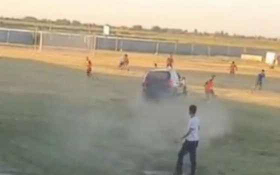 В социальных сетях распространилась информация о том, что в Сырдарьинской области водитель Captiva пытался сбить футболистов и других людей на поле.