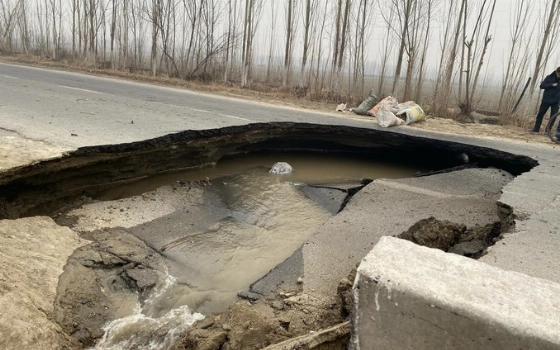 Аналогичный случай произошел в Намангане. Telegram-канал Troll.uz опубликовал фотографии обвалившейся дороги.