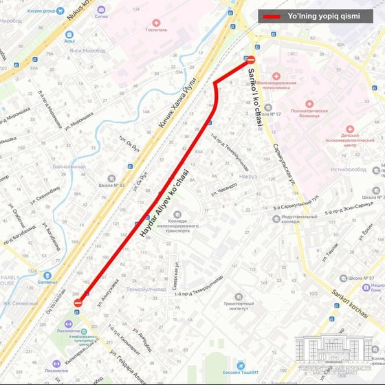 Ремонтные работы будут проходить в Мирабадском районе по улице Гайдара Алиева, сообщила пресс-служба хокимията Ташкента.
