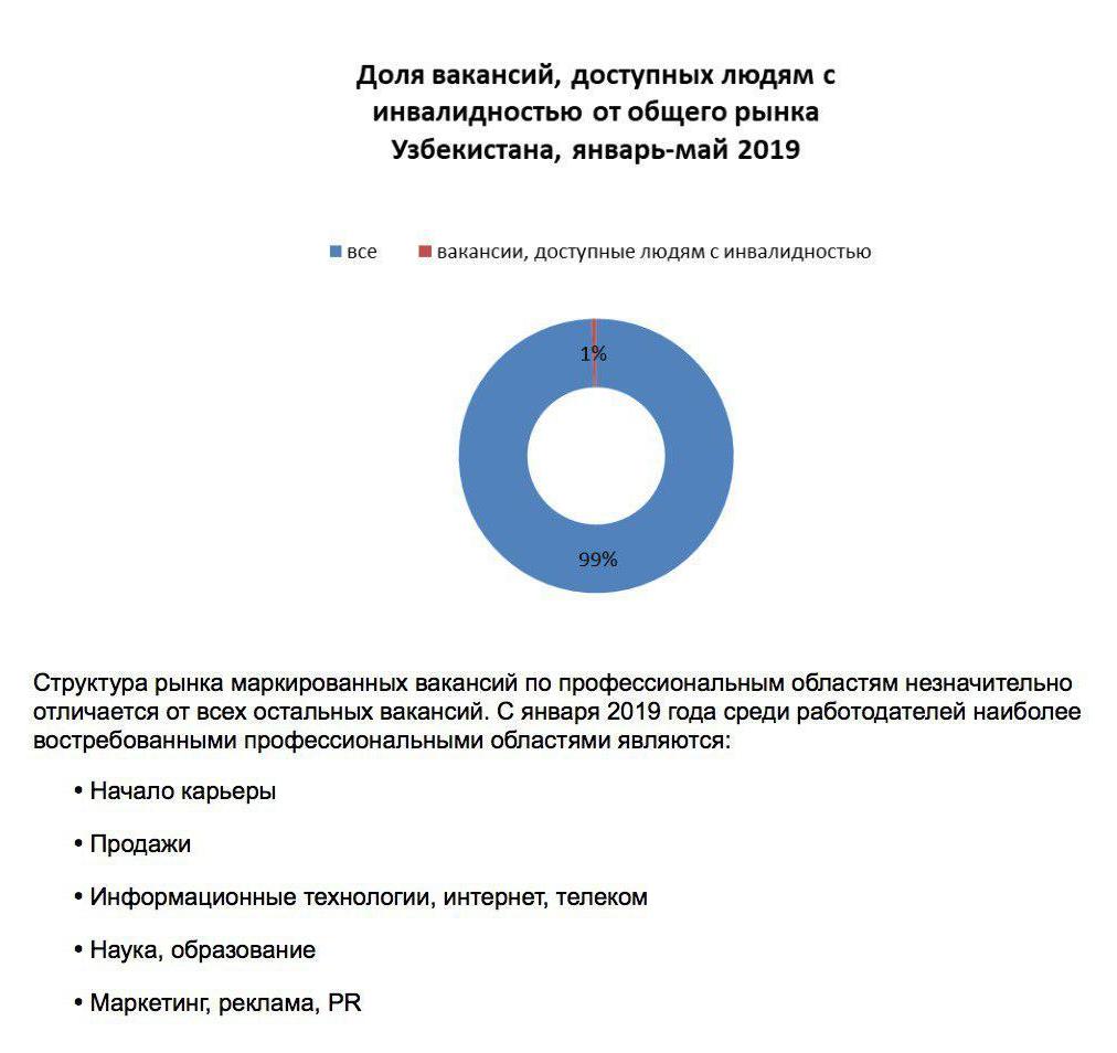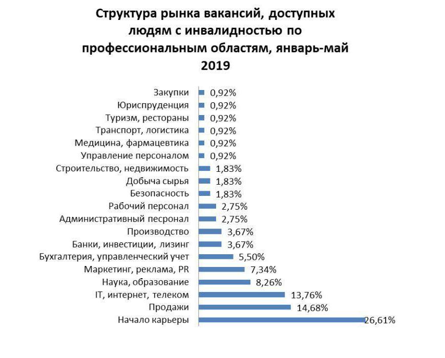 В 2019 году доля вакансий, доступных людям с инвалидностью от общего числа вакансий составляет 1%. Об этом говорится в обзоре HeadHunter, оказавшимся в распоряжении Repost.