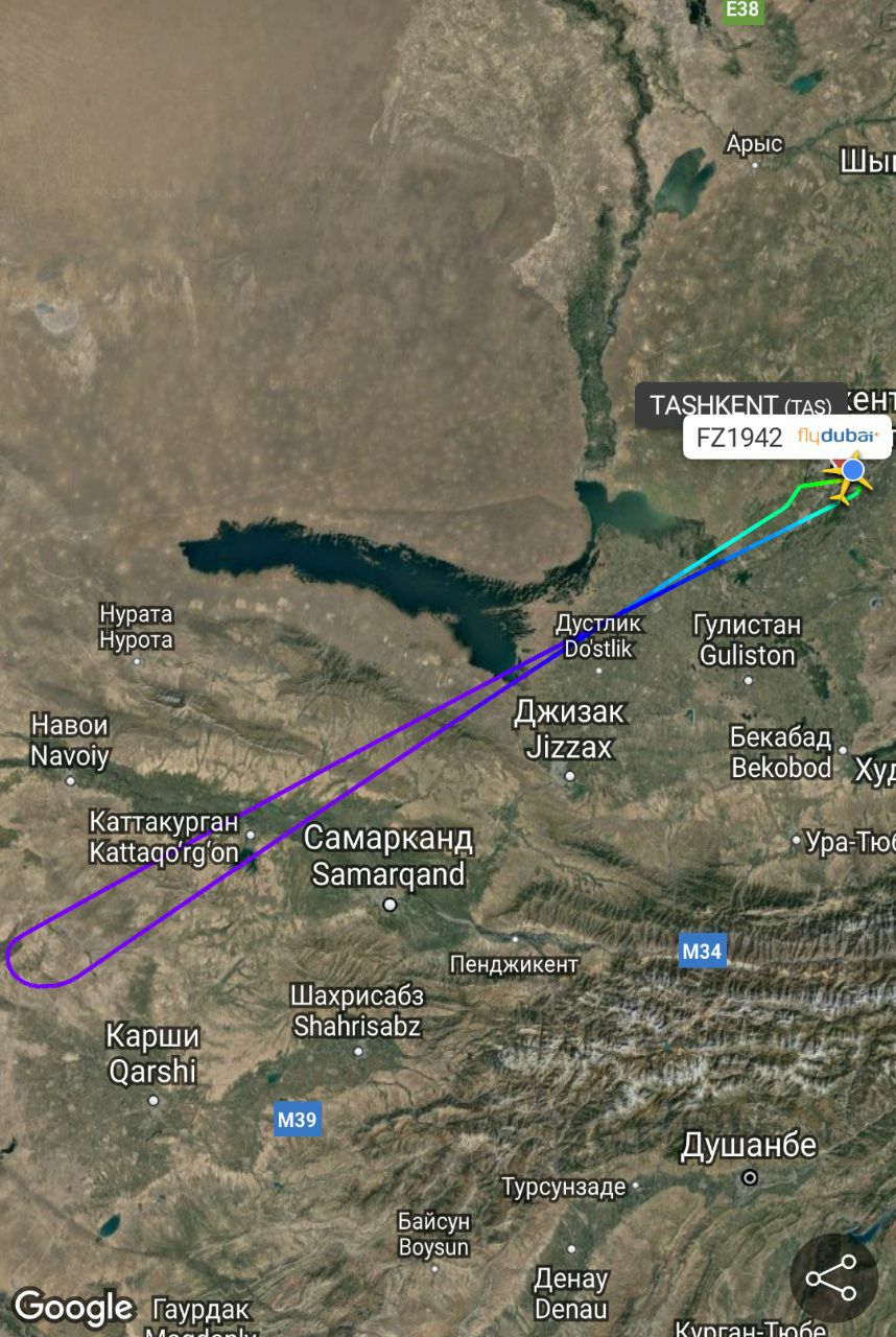 Лайнер вылетел из столицы Узбекистана по маршруту Ташкент — Дубай, но через 35 минут развернулся и полетел обратно. Борт успешно сел а Ташкенте в 5:20.