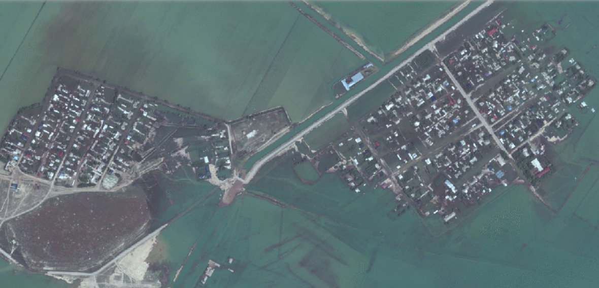 Канал The Weather представил фото со спутника до и после обрыва дамбы на территории узбекско-казахской границы и близлежащих регионов Казахстана.