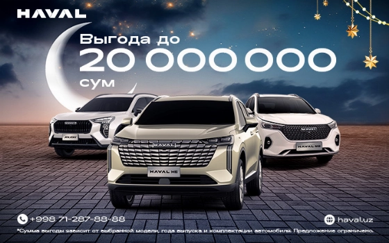 • выгода до 20 млн сумов на автомобили HAVAL Jolion;