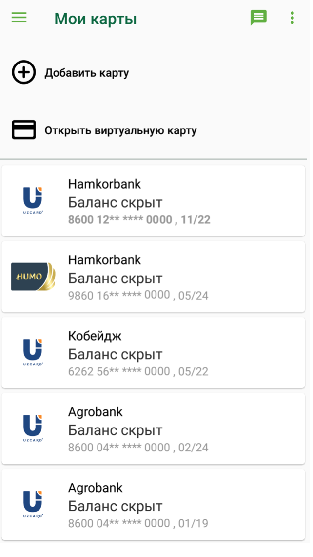 С виртуальной картой Humo можно воспользоваться такими функциями как онлайн конверсия средств на международные карты от Hamkorbank, оформление онлайн вкладов, а также: