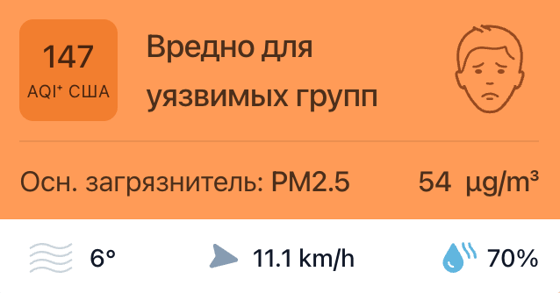 В 11:00 станция мониторинга в столице Узбекистана показывала результат в 147 AQI. Концентрация PM2.5 — в 10.8 раз выше рекомендуемого ВОЗ среднегодового значения качества воздуха.