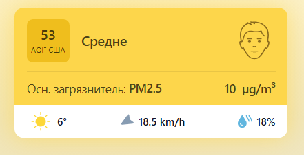 В 09:10 станция мониторинга в столице Узбекистана показывала результат в 53 AQI. Концентрация PM2.5 — в 2 раза выше рекомендуемого ВОЗ среднегодового значения качества воздуха.