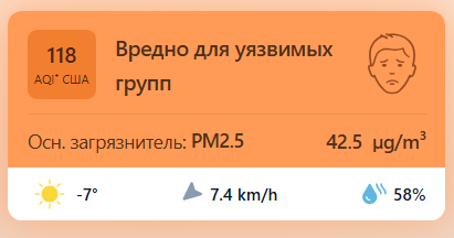 В 09:05 станция мониторинга в столице Узбекистана показывала результат в 118 AQI. Концентрация PM2.5 — в 8,5 раза выше рекомендуемого ВОЗ среднегодового значения качества воздуха.